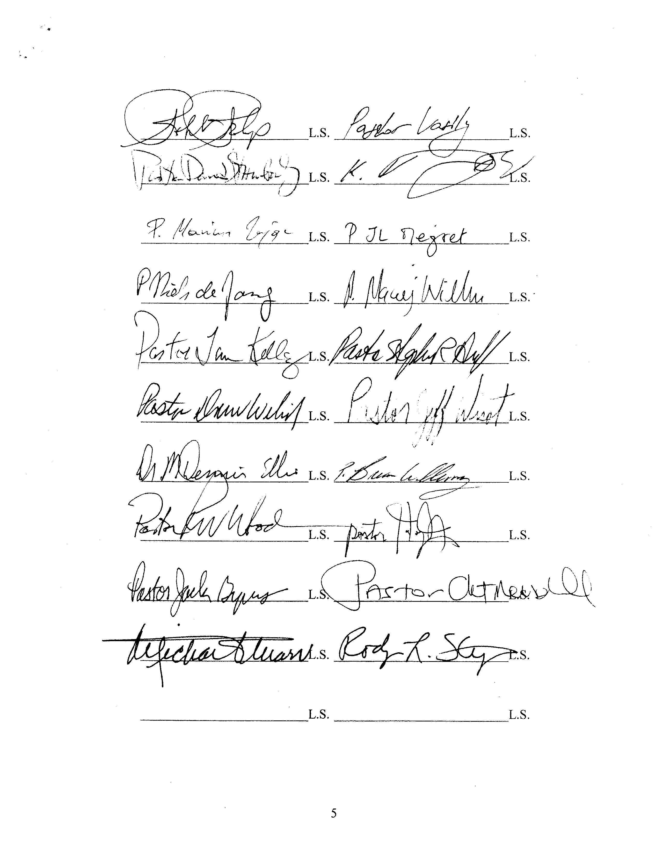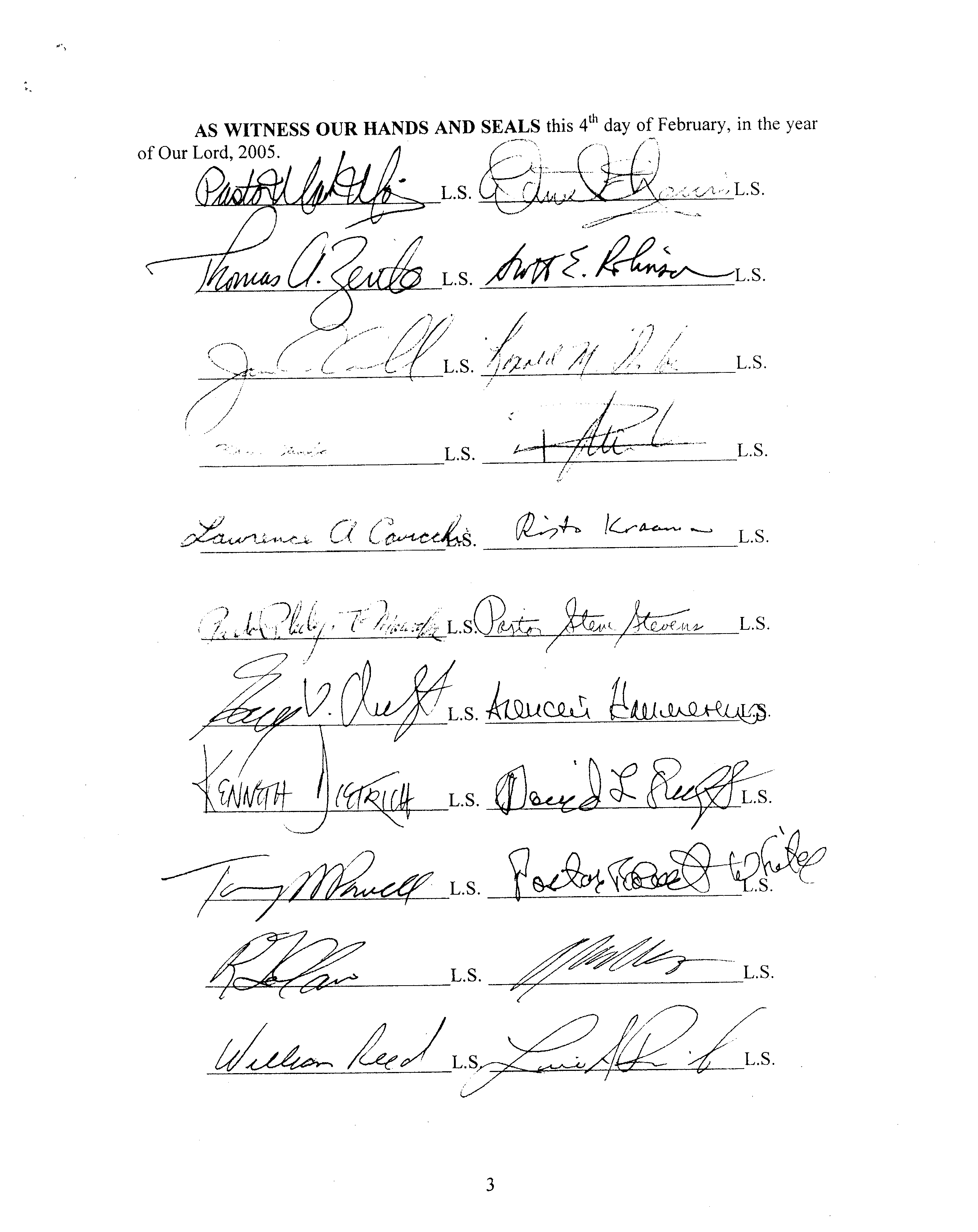 On December 5, 2004 we were given a commission by Pastor Carl H. Stevens, Jr. to convene this meeting at Sandy Cove, Maryland for the purposes hereinafter stated; and